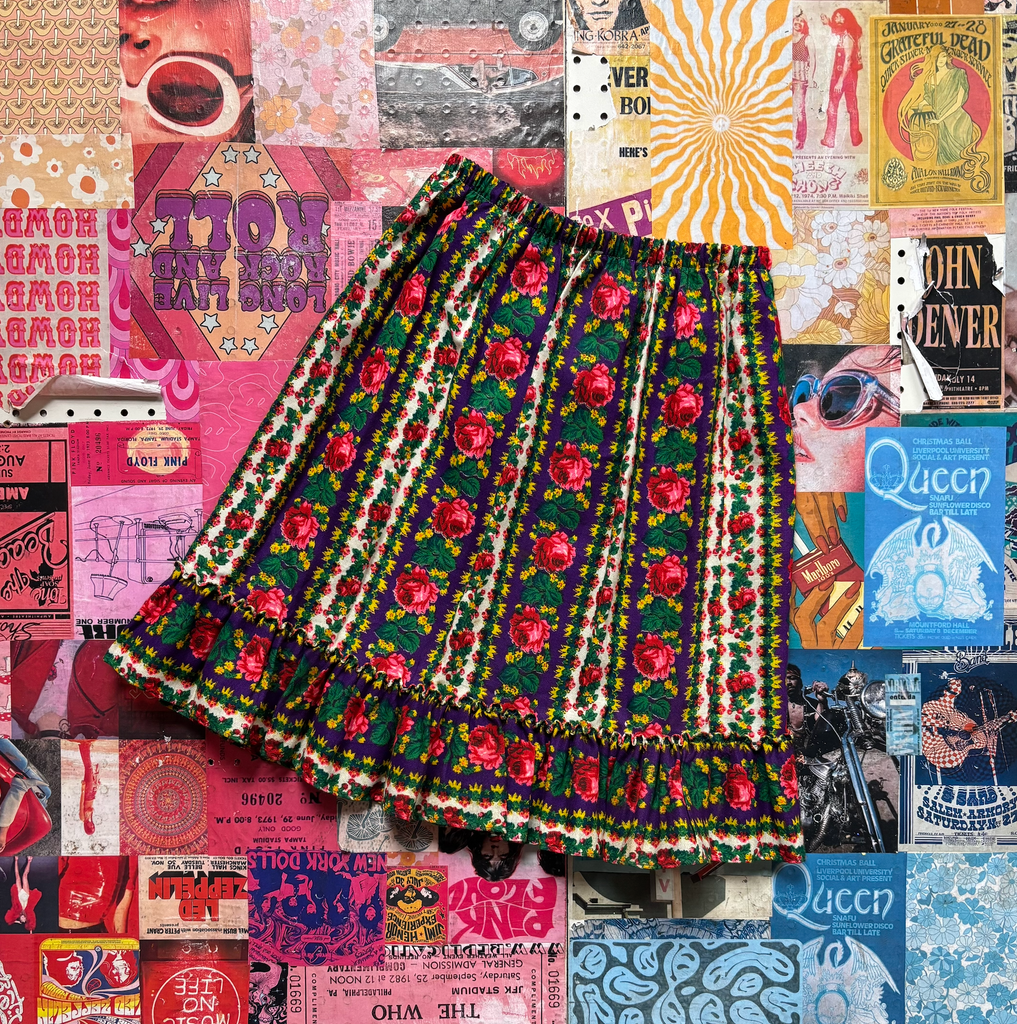 Purple Striped Floral Skirt