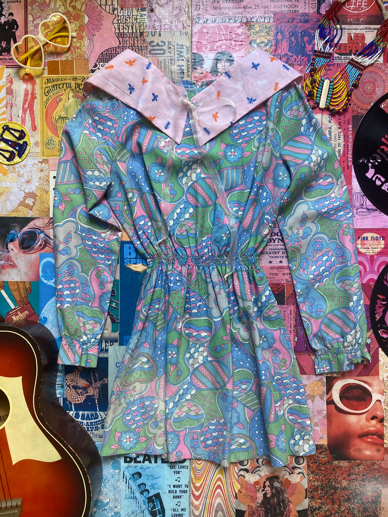 Our handmade collars are made from recycled fabrics. Simply tuck the inner fabric inside the collar of your shirt and secure in front with the ribbon. The perfect way to spice up a simple outfit!